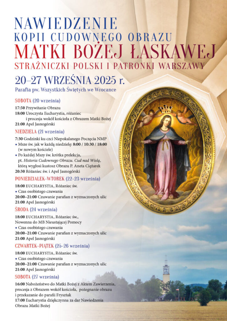 Nawiedzenie kopii Cudownego Obrazu Matki Bożej Łaskawej Strażniczki Polski i Patronki Warszawy 19 września 2025 Serdecznie zapraszamy na perygrynacje Obrazu!